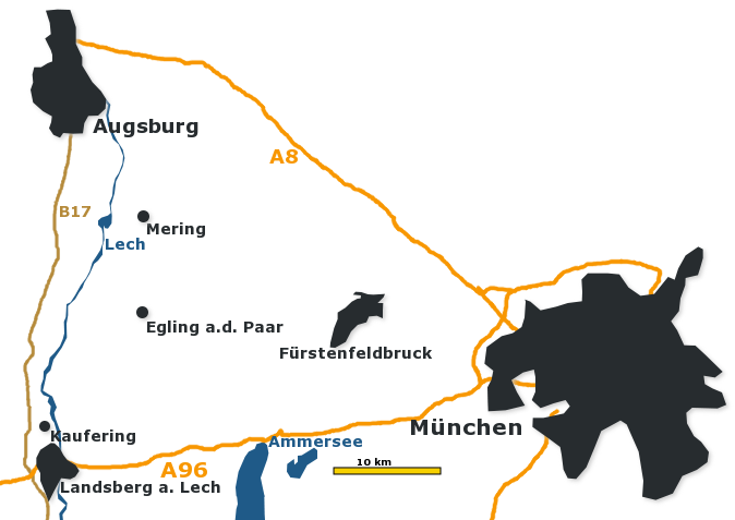 Kilometer mit dem Auto ab Egling a.d. Paar