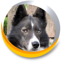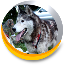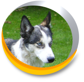 Diesen wunderbaren und ausgesprochen hübschen Alaskan Husky haben wir zusammen mit seinem Wurfbruder Aramis im September 2007 von Werner Laqua aus dem Unterallgäu übernommen. Er hatte ausgezeichnete Leaderqualitäten (Gehorsam, Orientierungssinn, Selbstbewußtsein), nur leider wurde plötzlich im Januar 2011 eine schwere Herzinsuffizienz diagnostiziert. Er war stets äußerst kooperativ bei allen Therapien, eine wahre Seele von einem Hund.